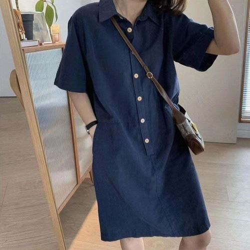 [셀럽하우스]여름 VOIT7870 카라 버튼디테일 여자 반팔셔츠 버튼 원피스