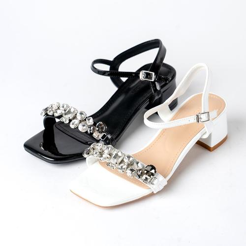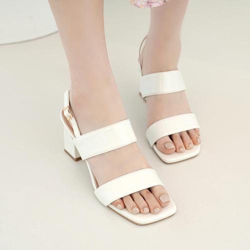 [에이치플러스몰]투 스트랩 스퀘어토 샌들힐 5cm 여성 데일리 미들힐