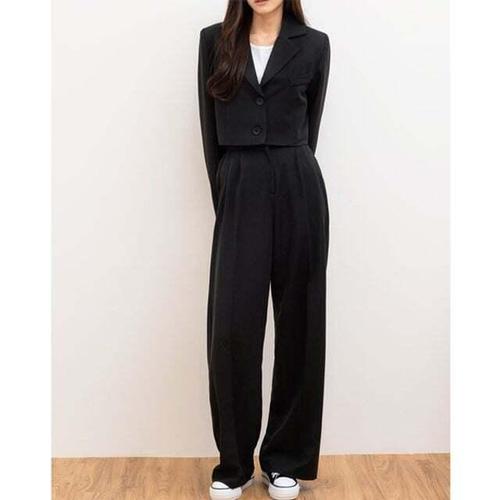 [셀럽하우스]오피스룩 QDUT7024 여자 크롭자켓 와이드슬랙스세트 여성팬츠