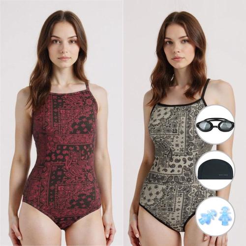 [4종세트] 베이직엘르 여성 X백 페이즐리 삼각 실내수영복 BEF-Z107