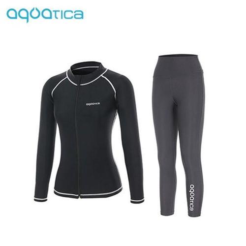 [아쿠아티카]여성 래쉬가드집업 AQAWJP23002+하이웨스트 워터레깅스 BK세트