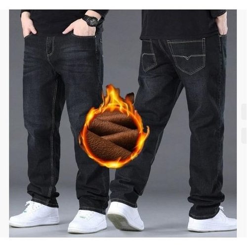 기모스판청바지 중년청바지 남자 빅사이즈 남성기모데님 일자 블랙진