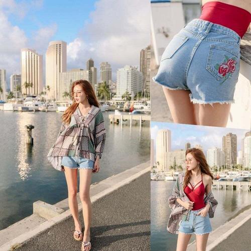 [셀럽하우스]여성 XQOZ8967 A라인 스타치 데님 반바지 숏 팬츠 청반바지