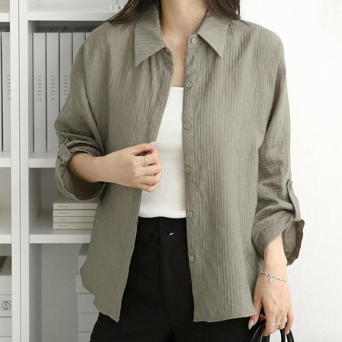 [신상오픈런]여성 가을 링클 프리 히든 버튼 7부 카라 셔츠 하객 패션