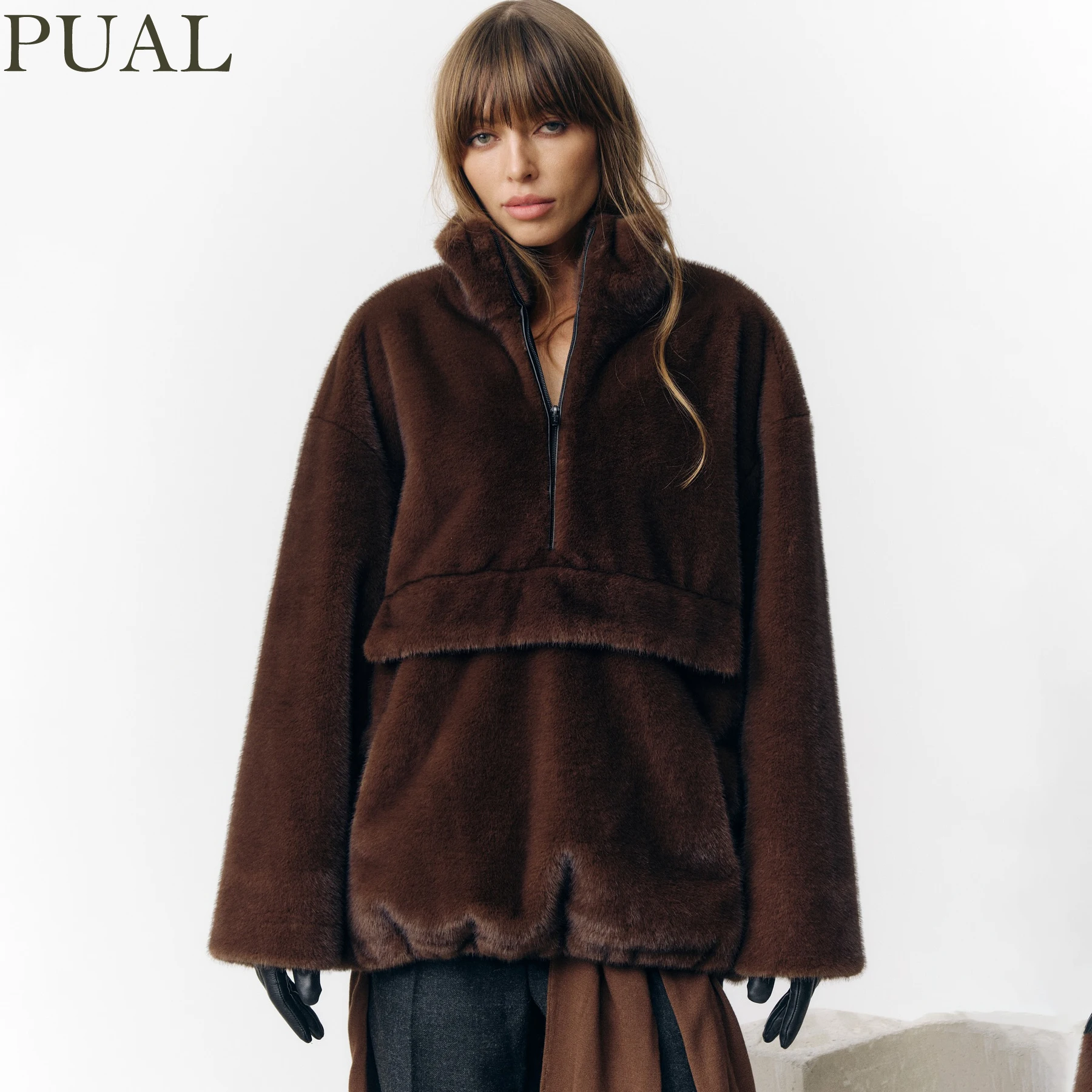 2025 디자이너 인조 모피 코트, 새로운 겨울 스타일, 따뜻한 풀오버 지퍼 탑 심플하고 스타일리시하며 우아함