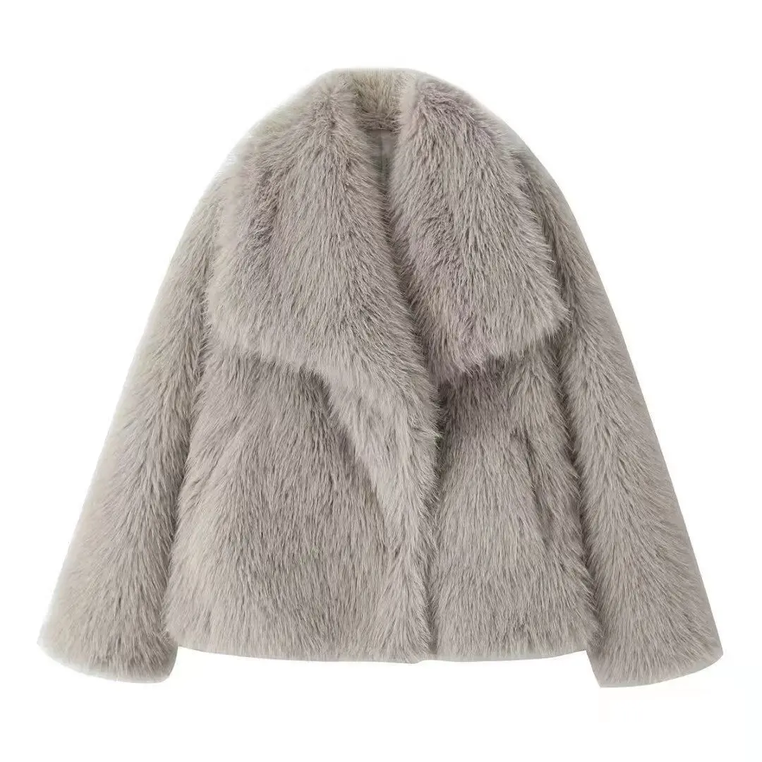 2025년 신상 여성 겨울 플러시 두꺼운 따뜻한 루즈핏 여성 인조 토끼털 코트 루즈핏 라펠 퍼 코트