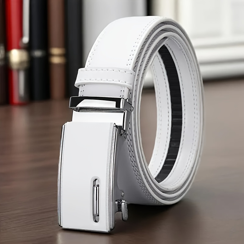 TEMU 1개 남성용 화이트 인조 가죽 벨트, 합금 자동 버클 - 스타일리시 & 내구성, 청바지, 비즈니스 의상 및 선물용으로 완벽, 크리스마스, 할로윈, 데이에 이상적, 남성용 골프 벨트, 화이트/남성용 인조 가죽 벨트
