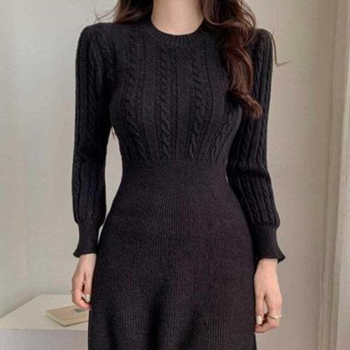 [셀럽하우스]연말 WDOV2440 여자 캐주얼 모임 룩 필수템 블랙 미디 니트 원