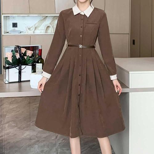 [셀럽하우스]코듀로이 VHNK7854 셔츠 배색 카라 A라인 핀턱 연말룩