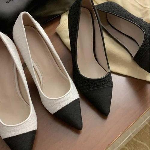 [셀러허브_여성트랜드패션]ONM 연말 모임 파티 룩 스틸레토 배색 하이힐 트위드