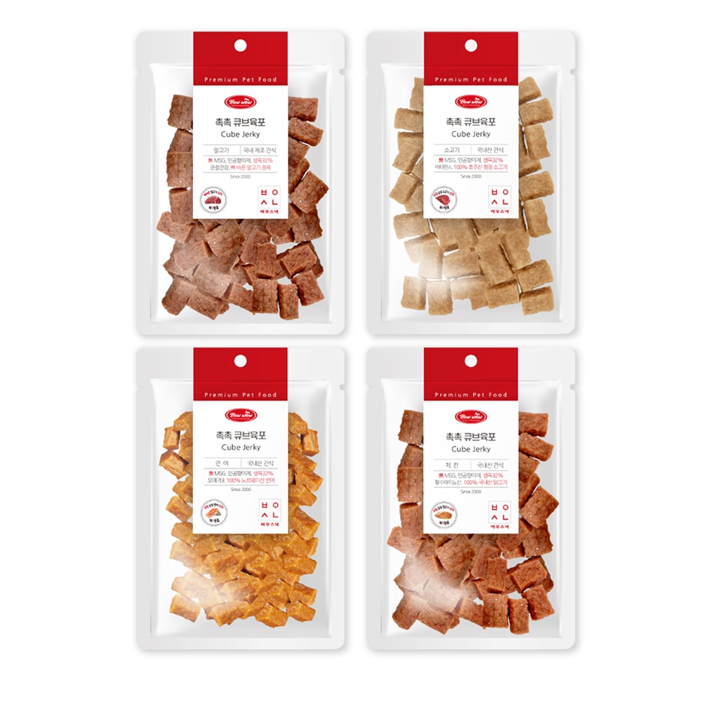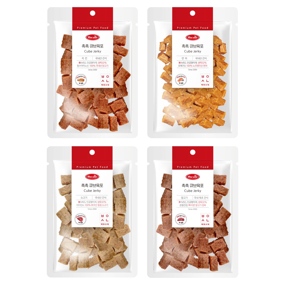 4종 SET 국내산 촉촉큐브육포 300g 말고기/치킨/연어/소고기 생육간식 고단백