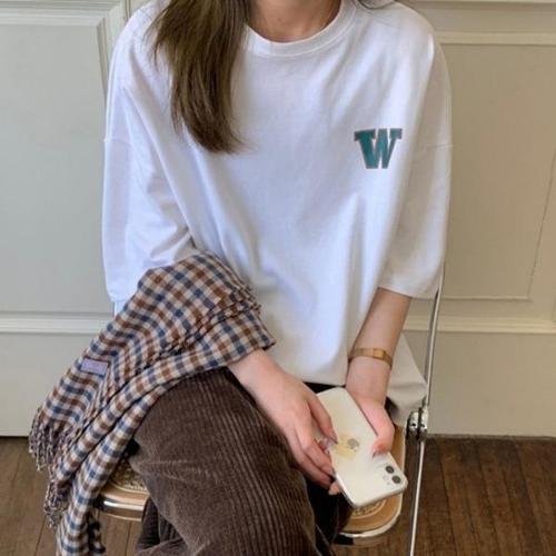 [엄지척]영어 자수 티셔츠 여름 캐주얼룩 일반핏 여친룩_19628133_667501