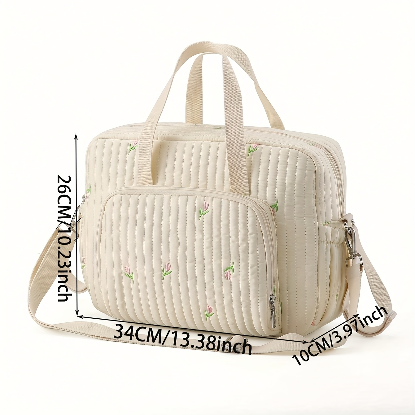 TEMU 시크한 곰 & 튤립 자수 기저귀 가방 - 유아 여행 필수품을 위한 나일론 크로스바디 부모 가방, 유모차 클립 포함
