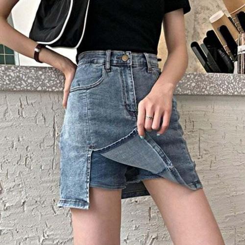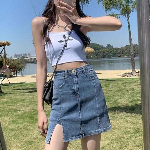 [셀럽하우스]짧은 XSFI6768 청치마 이너 속바지 옆트임 데님 미니 스커트