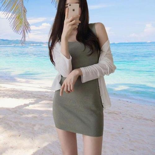 [셀럽하우스]옆트임 VEGE5865 슬리브리스 데일리 롱원피스 니트 클래식 레이