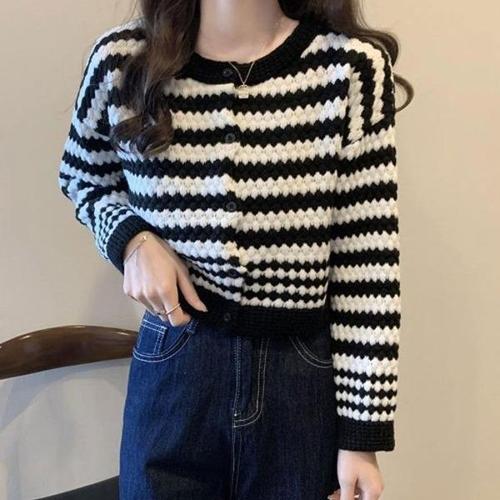 [엄지척]예쁜 스트라이프 짧은 기장 간절기 카디건_19791772_667501