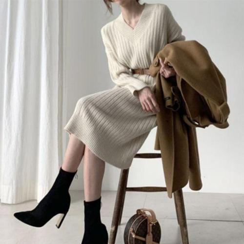 [셀럽하우스]미디원피스 IGTA4343 예쁜라인 롱원피스 브이넷 니트원피스 허