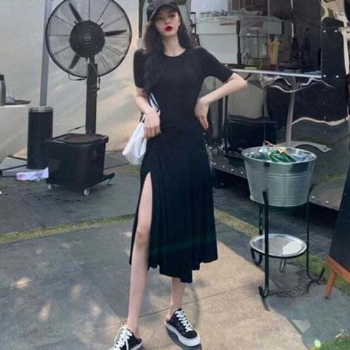[셀럽하우스]여자 HZGQ6851 카라 캐주얼 예쁜 옆트임 셔링 롱원피스