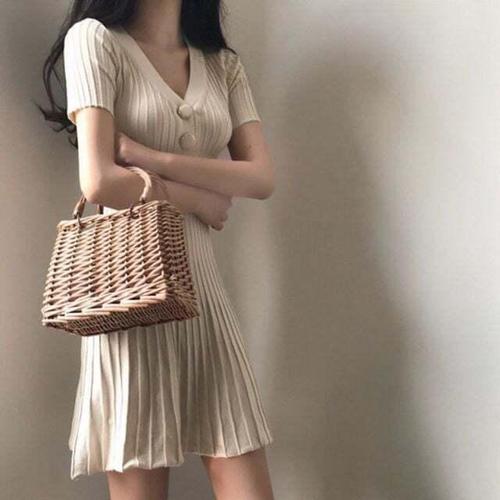 [셀럽하우스]예쁜 AWEF0658 니트 봄원피스 랩 데일리 롱 드블랑 여름원피스