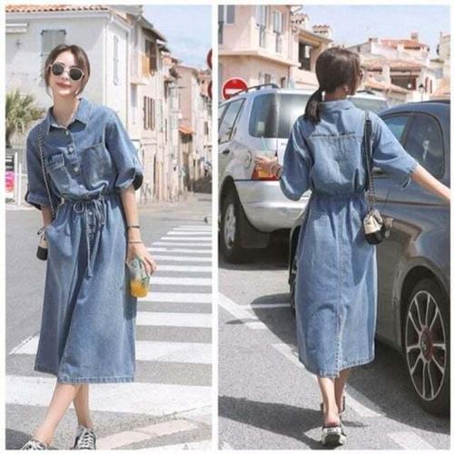 [셀럽하우스]뒤트임 MOWX3130 스트링 허리 예쁜 원피스 여성원피스 롱 데님