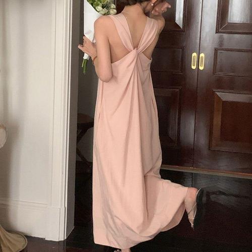 [셀럽하우스]예쁜 EHWV3404 뒷꼬임 원피스 A라인핏 롱기장 여행 코디