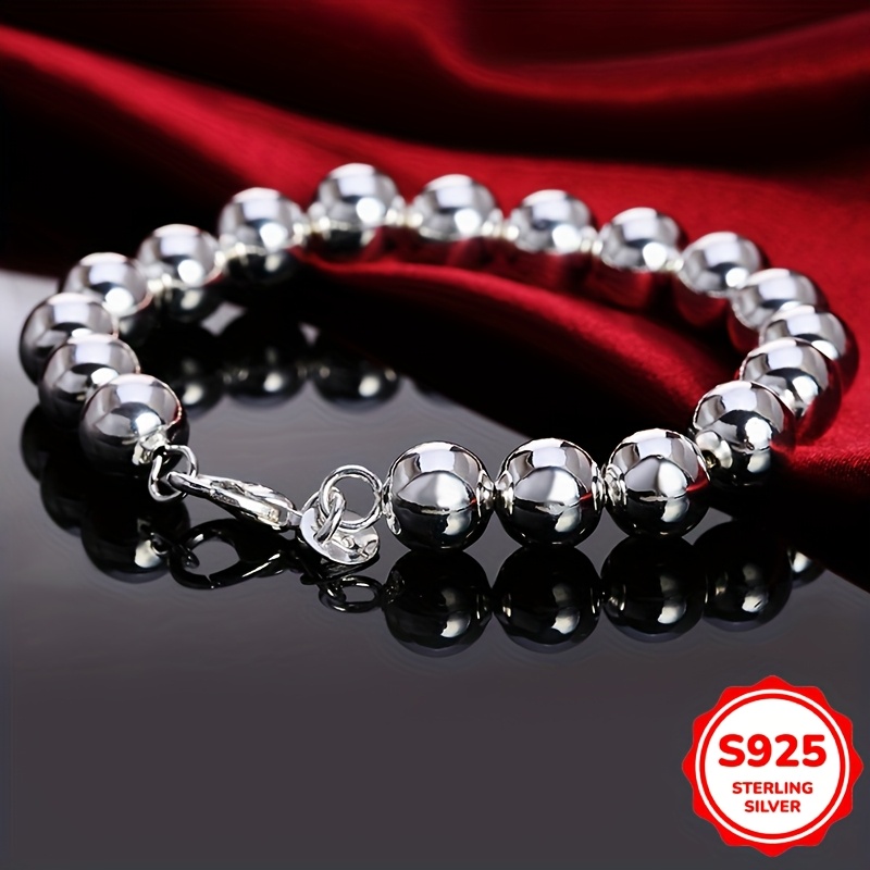 TEMU 스타일의 우아한 925 실버 팔찌 (6mm 비즈 장식) | 발렌타인데이, 어버이날 선물로 완벽, 파티 액세서리, 정교한 장인 정신, 패션 애호가를 위한 영적 주얼리