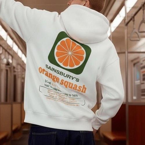 [옷자락]남성 오렌지 프린트 레트로 무드 후드티