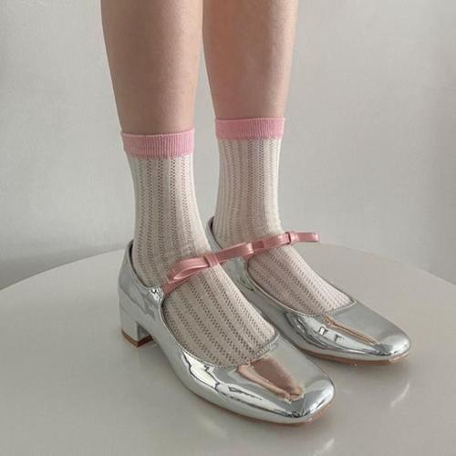 [SBFT5AR]레이스 중목 양말 오버니삭스 텔 배색 4켤레