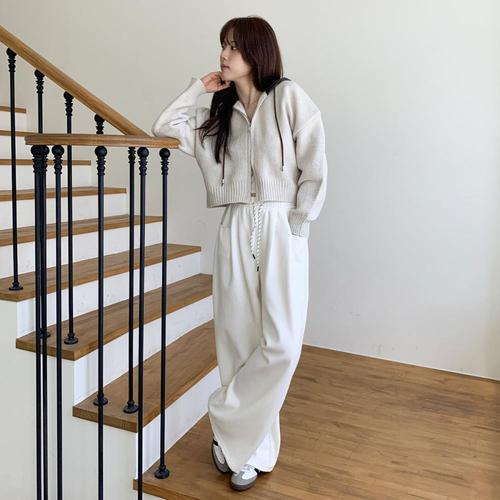 [신상오픈런]여성 오버사이즈 가죽 후드 끈 크롭 투웨이 니트 집업