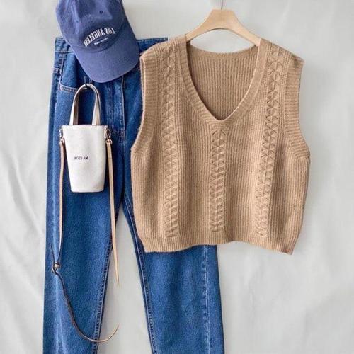 [신상오픈런]여성 브이넥 오버사이즈 니트 베스트 심플 꼬임 디자인
