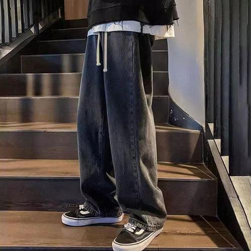 티류으스 남성 레트로 기모 데님 바지 가을 겨울 아메리칸 워시 루즈핏 캐주얼 팬츠 Lyw
