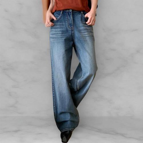 [옷자락] 여성 심플 내추럴 워싱 루즈핏 청바지 면 데님