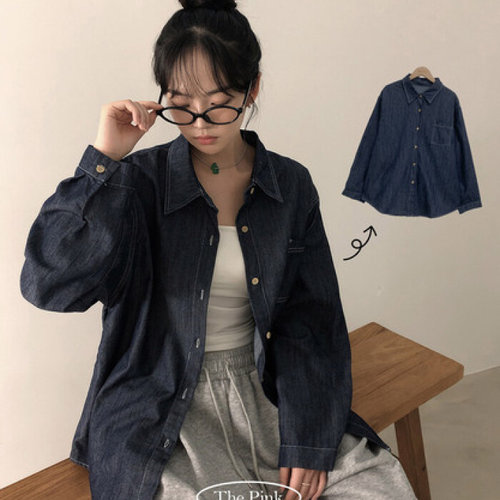더핑크 / 새아 오버핏 포켓 생지 데님 셔츠