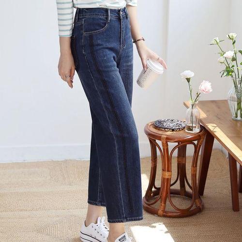 [신상오픈런]여성 배색 뒷주머니 루즈핏 반밴드 가을 데님 팬츠