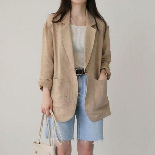 [에이치플러스몰]오버핏 여성 추천 마 봄 꾸안꾸 여름 린넨자켓 오피스
