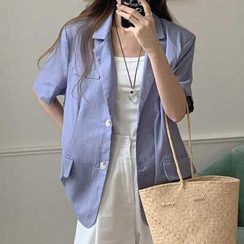 [에이치플러스몰]오버핏 인기 여성 마 봄 감성 여름 린넨자켓 오피스