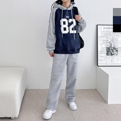 [sado]여성 오버핏 82 기모 배색후드티 와이드 스트링 트레이닝세트ND746-ND270
