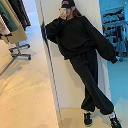 싱싱덴덩 여성운동복세트 후드집업 루즈핏 솔리드 트레이닝 세트 캐주얼 상하 투피스