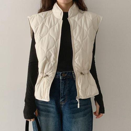 [유야]허리스트링 퀄팅 누빔 패딩 조끼 깔깔이 베스트 -VE0032H- 빅사이즈 루즈핏 여성 가을 겨울