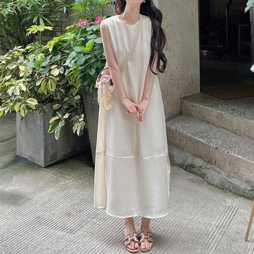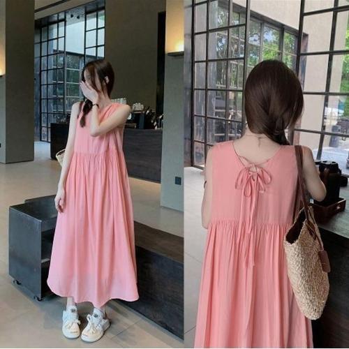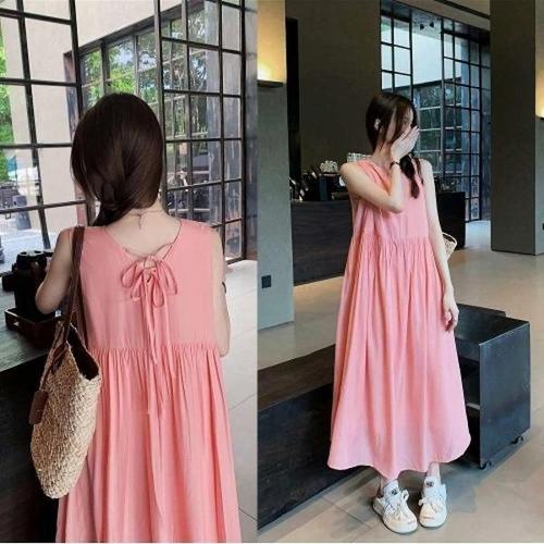 [엄지척]여자 라운드넥 루즈핏 시원한 민소매 A라인 롱 원피스_19913190_667501