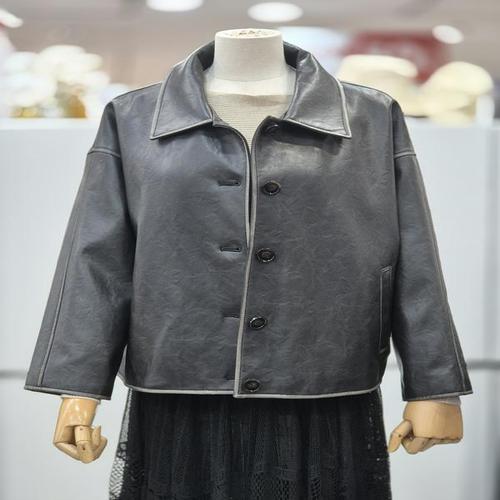 [공구우먼] [제작] 리스본 레더 누빔 루즈핏 하프 자켓 85318 빅사이즈 여성의류