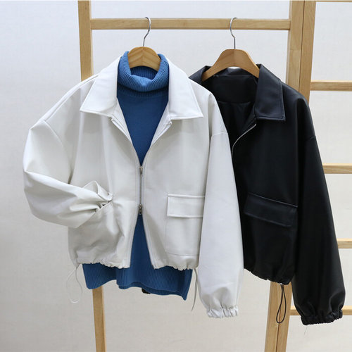 여자 가죽 자켓 추동 소매 오버핏 쇼트 재킷 코트 원픽4