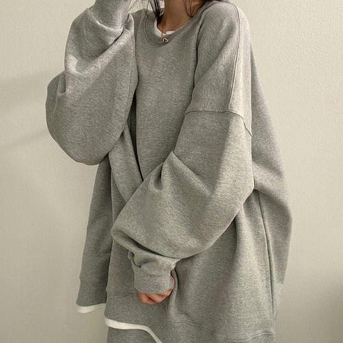 (색상 그레이)레이어드 Winte 그레이 맨투맨 루즈핏 기모 여자 여성 겨울패션