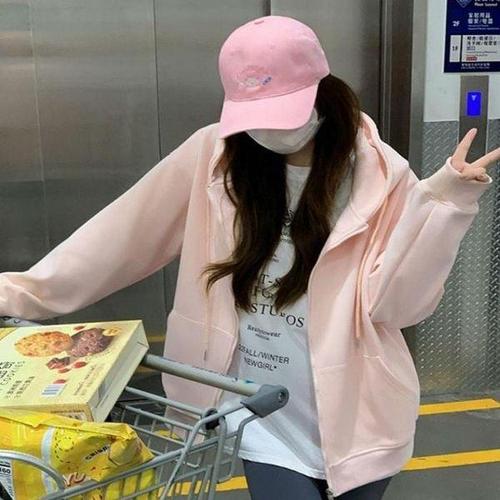 후드집업 베이직 긴팔 무지 스타일 데일리 루즈핏 여 WFLQDH9