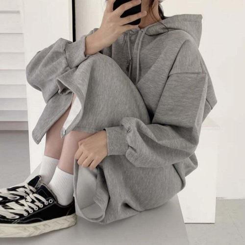 [셀럽하우스]여성 BNOL5971 롱 후드 기모 오버핏 데일리 심플 무지 원피스