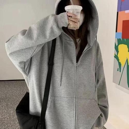 [퍼니메이커]여자 대학생 캐주얼 집업 후드 점퍼 간절기 캠퍼스 룩 봄잠바오버핏후드집업 회색후드티무지후