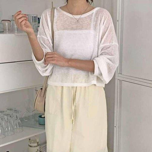 여름 쿨 린넨 마 브이넥 빅사이즈 루즈핏 반팔 니트 출근 모임 캐주얼