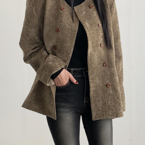 클루이가넷 / 모딘 벨벳 스웨이드 루즈핏 더블 단추 벨로아 여성 자켓