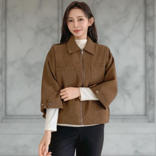 [옷자락]여성 스웨이드 더블포켓 루즈핏 카라넥 크롭 재킷