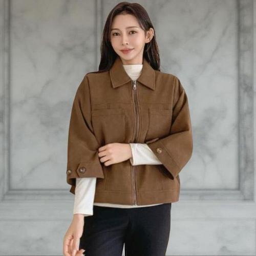 옷자락 / 여성 스웨이드 더블포켓 루즈핏 카라넥 크롭 재킷